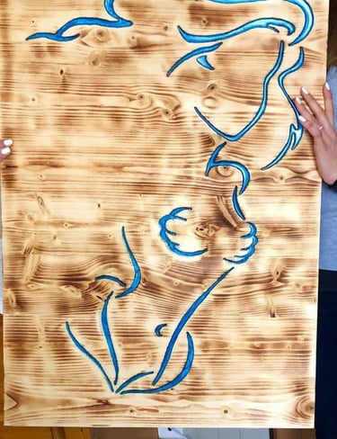La beauté de la résine dialoguent avec la chaleur du bois, créant des compositions où les textures et la lumière se répondent avec douceur. Au-delà du line art, cette alliance permet d’explorer différentes expressions artistiques, toujours guidées par l’équilibre entre minimalisme et contraste.
