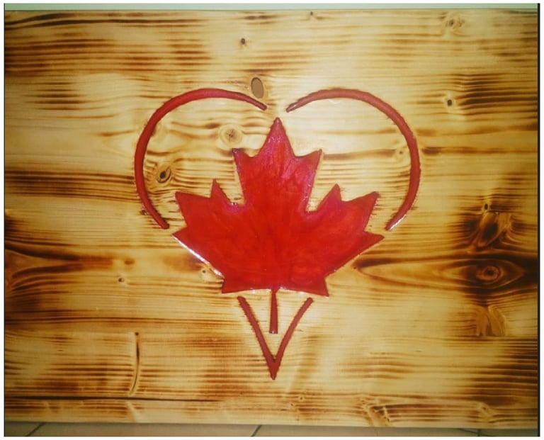 Epoxy Art. Toujours sur un support bois. Réalisé pour une amie dont le papa canadien n'est plus parmi nous, mais restera à jamais dans son cœur.