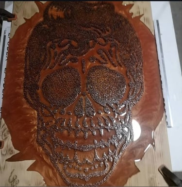 Tableau pour la marque "Men Stories" avec un mélange bois, résine epoxy et clou. Une première qui mélange ces trois matières