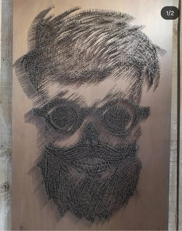 Tableau réalisé pour mon barbier de nouveau. Cette fois-ci j'avais eu carte blanche sur le barbu, du coup petit clin d'œil à lui, ce sont ces lunettes de vue de refaite